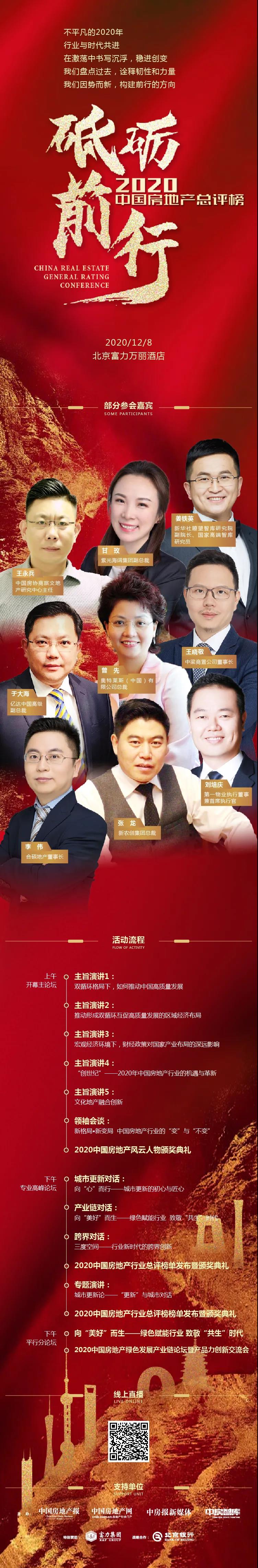 On December 8, a “2020 China Real Estate Overall Appraisal Conference” focusing on the new development of the industry was held in Beijing, which was held by China Real Estate News, China Real Estate Network, China Real Estate News New Media and China Real Estate Think Tank. The conference gathered more than 300 front-line experts, scholars, leaders and senior personages in the industry, which showed the professional discussions and views of outstanding representatives in various fields on the trend of the industry and enterprises in the new era, and gave an authoritative interpretation of the future development trend of the real estate industry under the double-cycle pattern through important forums such as leaders’ talks, dialogue on urban renewal, dialogue on industrial chain and cross-border dialogue.