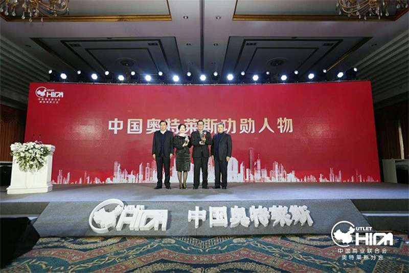 上圖為何濟海和劉嵐(代萬文英)領(lǐng)取“中國奧特萊斯功勛人物”獎項