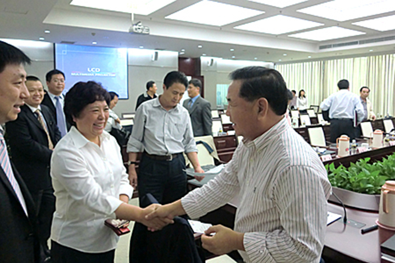 商業(yè)管理公司董事長(zhǎng)萬(wàn)文英與海南省委書(shū)記衛(wèi)留成親切握手