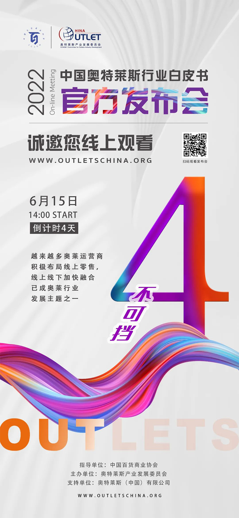 2022年6月15日14:00,《2022年中國(guó)奧特萊斯行業(yè)白皮書》線上發(fā)布會(huì)即將正式開始,本次發(fā)布會(huì),將對(duì)國(guó)內(nèi)零售市場(chǎng)及奧萊產(chǎn)業(yè)引入中國(guó)20年發(fā)展的經(jīng)驗(yàn)及機(jī)遇做出全新解讀。