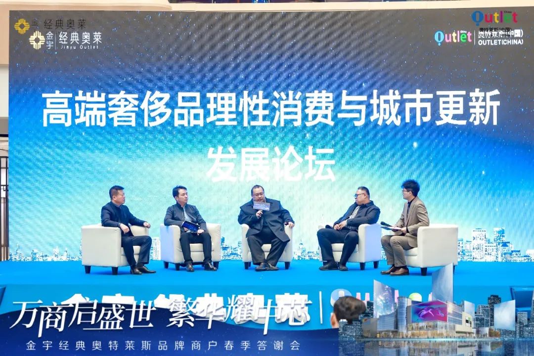 金宇·經(jīng)典奧萊品牌商戶春季答謝會專題發(fā)展論壇也同日開啟。本次論壇以“高端奢侈品理性消費與城市更新”為主題,來自奧萊中國總裁吳永康先生,中房智庫秘書長鄧明政先生,尚家格品(北京)國際貿(mào)易有限公司副總經(jīng)理王曉翔先生以及山東金宇商貿(mào)有限公司總經(jīng)理李良臣先生等4位嘉賓,就奢侈品消費下沉趨勢變革、濟寧城市更新與商業(yè)賦能、新消費場景與購物體驗探索等議題展開思維碰撞,為現(xiàn)場觀眾獻上了一場思想盛宴。