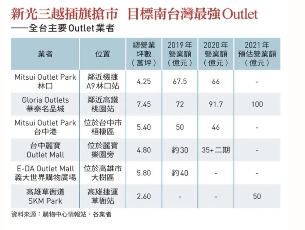 臺灣主要奧萊營業(yè)額統(tǒng)計(2019-2021)