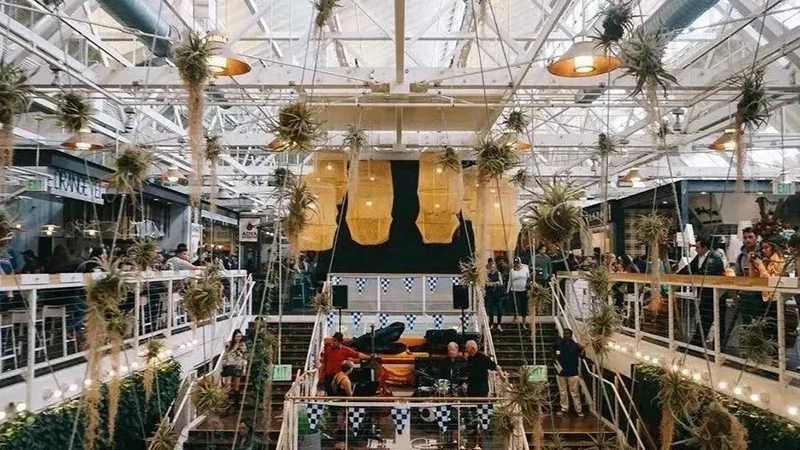 項目舊址同樣具備歷史故事的美國Packing House,始建于1919年,原本是當(dāng)?shù)氐母涕龠\轉(zhuǎn)中心。直到2014年受傳統(tǒng)集市的影響,才被開發(fā)者Sadeghi改造為美食體驗式社區(qū)商業(yè),力圖以濃厚的本土生活體驗氣息塑造場所精神。通過提供公共餐位來鼓勵人們到店內(nèi)購買食物,并與好友一同分享。項目在提高購物體驗的同時,還增強(qiáng)社交場景的塑造。