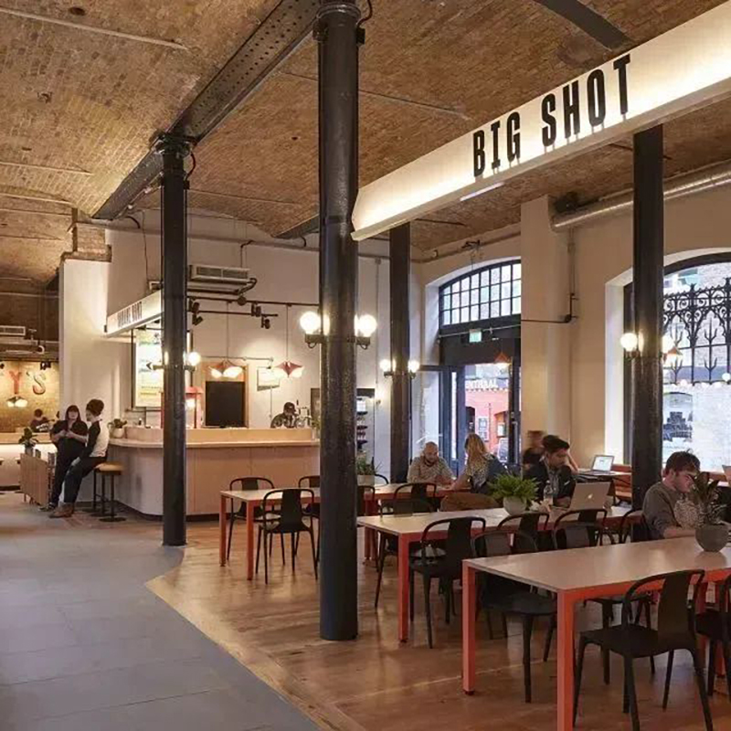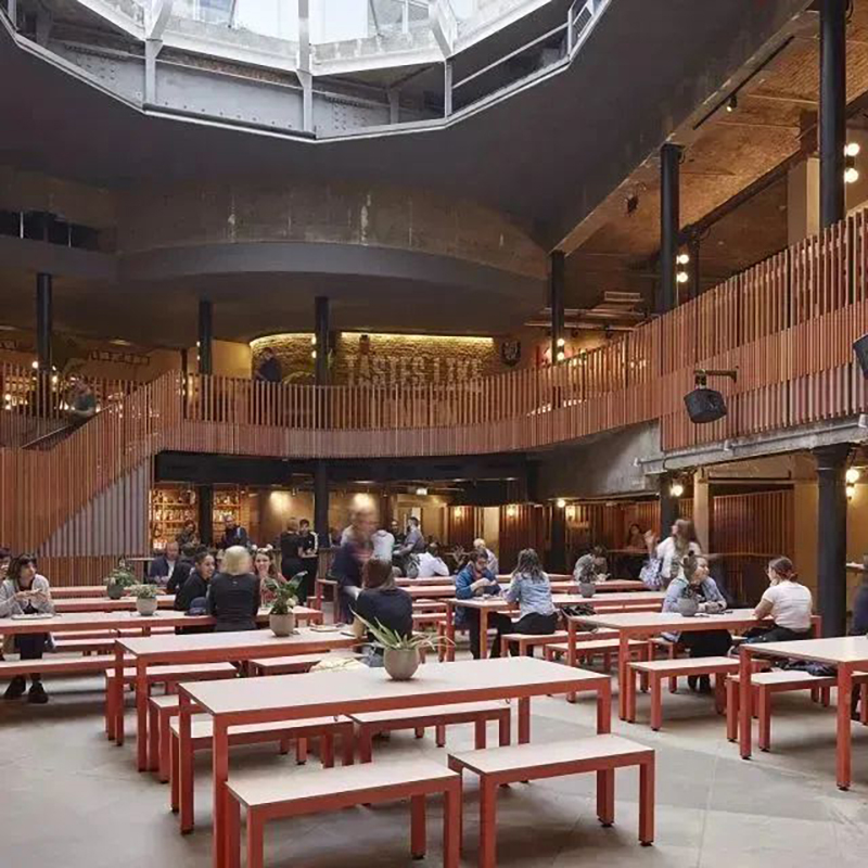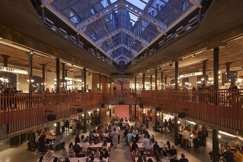 在曾經(jīng)用作儲存黃瓜和香蕉的Thomas Neal倉庫打造24h營業(yè)的Seven Dials美食市集。將整個市集劃分為倫敦專業(yè)生產(chǎn)商的室內(nèi)生產(chǎn)線的「黃瓜巷」和坐擁一系列著名街頭食品商鋪和餐廳的「香蕉倉庫」,給古老的倉庫賦予了新的生機(jī)。