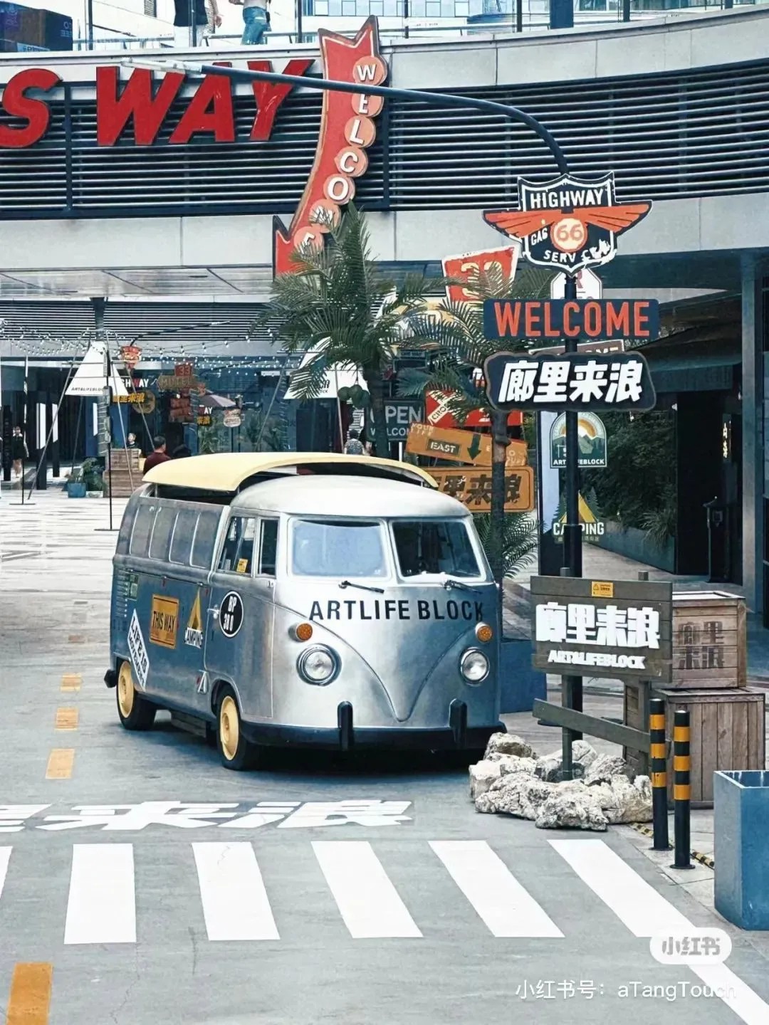 街區(qū)核心的下沉式廣場,匠心獨(dú)運(yùn),以美式公路風(fēng)情為藍(lán)本,巧妙融合異域風(fēng)韻與休閑度假氣息,不僅設(shè)計獨(dú)樹一幟,更成攝影打卡新寵,讓人仿佛穿越時空,瞬間切換場景,領(lǐng)略多元文化的魅力。此舉不僅巧妙解決了傳統(tǒng)商業(yè)下沉空間引流之困,更為其注入了勃勃生機(jī)與無限可能。