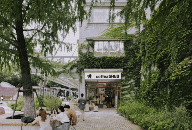 在上生·新所二期,森系場景只是其迷人的外衣,而真正觸動人心的是其以休憩為核心的設(shè)計理念。從戶外廣場的舒適座椅,到商店門前的精致花圃圍欄與臺階,每一處細(xì)節(jié)都精心考量,旨在為訪客提供充足的休憩空間。多維度的公共空間布局,讓漫步其中的人們感受到前所未有的松弛與愜意,仿佛時間在這里放慢了腳步。此外,樓頂?shù)倪\動平臺與屋頂花園更是賦予了這片空間更多的社交屬性,成為都市人放松身心、交流互動的新天地。