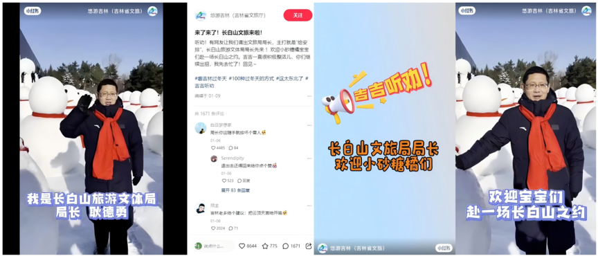 后有網(wǎng)友喊話“快讓長白山跟一波熱度”,吉林文旅現(xiàn)場“搖人”,長白山旅游文體局局長隨即拍攝歡迎視頻,再次實(shí)戰(zhàn)“聽勸式營銷”。