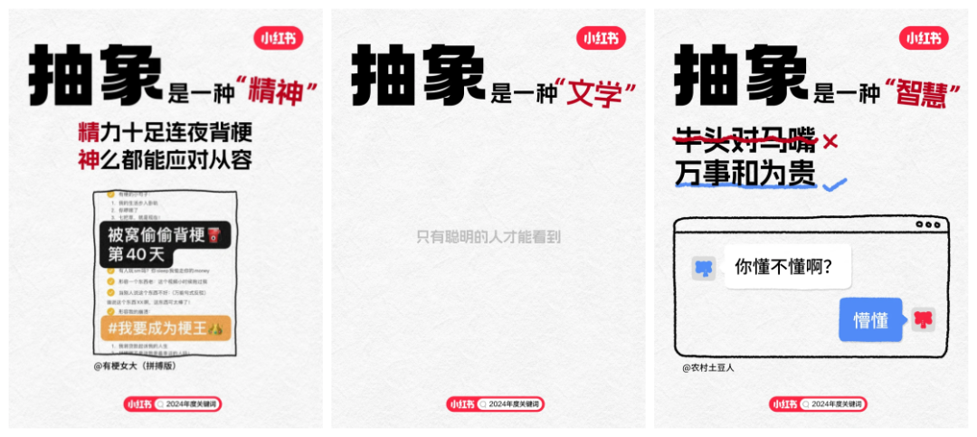 隨著2024年度關(guān)鍵詞“搞抽象”在小紅書上的火爆,我們不難發(fā)現(xiàn),無(wú)論是用戶對(duì)于生活哲學(xué)的深度探索,還是對(duì)于藝術(shù)、文化乃至日?,嵥槭挛锏莫?dú)特詮釋,都以一種前所未有的熱情被記錄與分享。