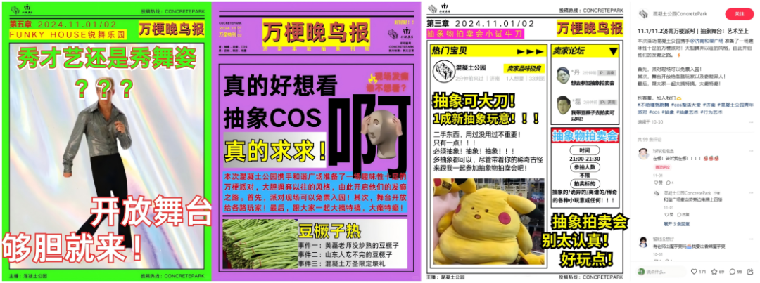 此外,對(duì)于購(gòu)物中心而言,搞抽象也適用于私域生態(tài)及社群運(yùn)營(yíng)。對(duì)比“正經(jīng)”的輸出式海報(bào),抽象策略更易吸引同頻人群聚集,讓購(gòu)物中心的每一次發(fā)聲更具話題傳播度,同時(shí)博得目標(biāo)客群的真實(shí)好感,也讓“參加購(gòu)物中心的活動(dòng)”變成一種生活方式。