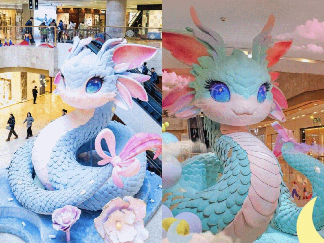 祥龍辭舊歲,靈蛇迎新春。隨著生肖的輪回之針指向蛇年,眾多購物中心已經(jīng)開始布置一系列蛇年主題裝飾,巧妙地將空間與藝術(shù)結(jié)合,以期在新春佳節(jié)期間營造出濃厚的節(jié)日氣息,向消費(fèi)者傳遞出美好的祝福。