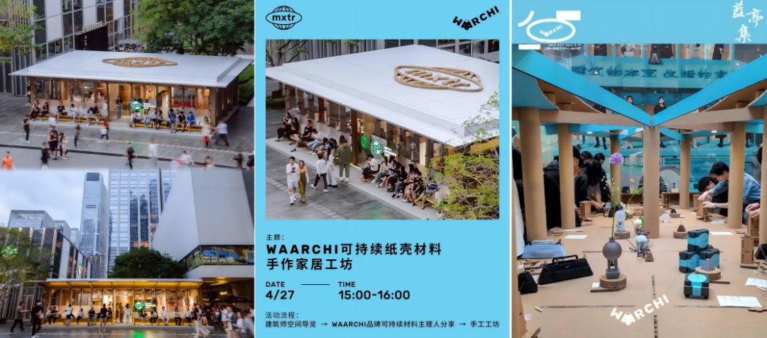 在這樣的空間場景下,每一位到訪者都不只是消費者。購物中心將可再生商品陳列講述為讓消費者參與創(chuàng)作的“材料變形記”、將舊物回收通過營銷的方式落為“行為貨幣化”,給了商戶、消費者更多的共創(chuàng)空間,以此催生的UGC傳播鏈正是在印證“參與深度決定商業(yè)生命力”這一探索性觀點。